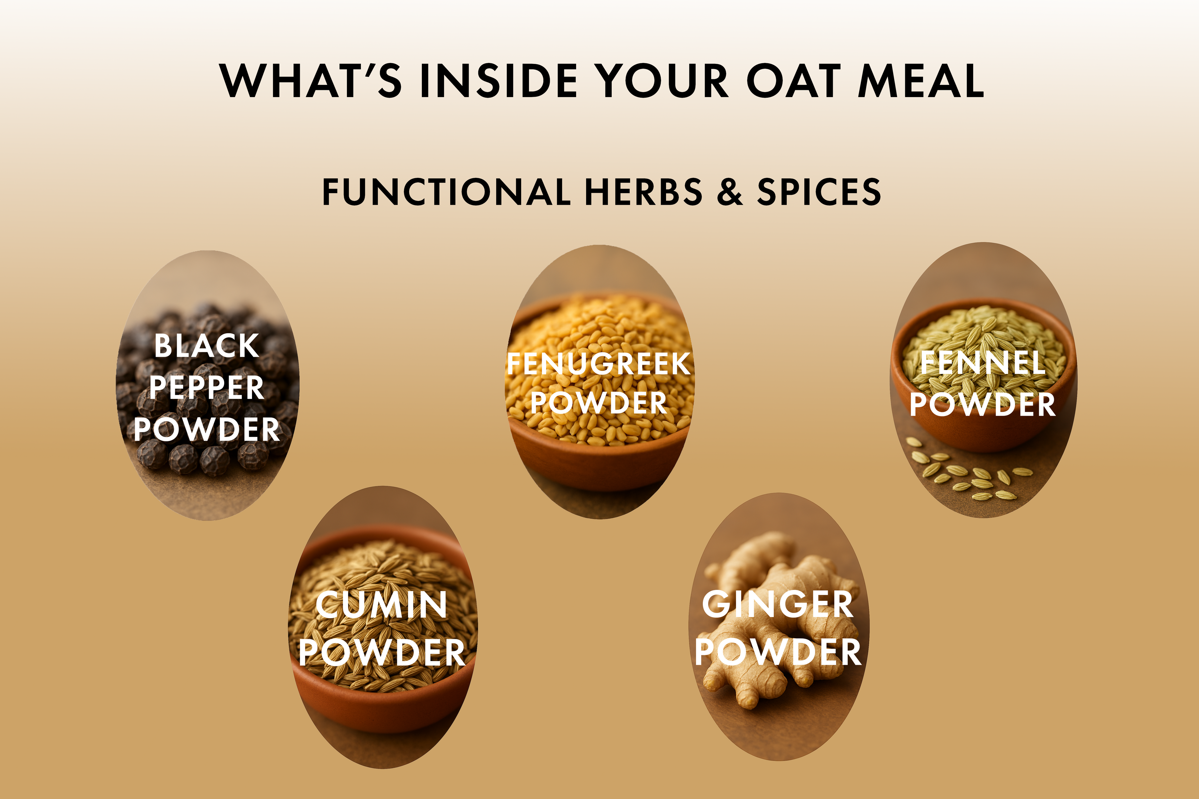 Absolutely! Our oats meal is made with rolled oats, plant protein, and traditional Indian spices like Fennel and black pepper — known to support better digestion and reduce bloating. It’s light on the stomach, naturally high in fiber, and helps promote a healthy gut microbiome with every serving.