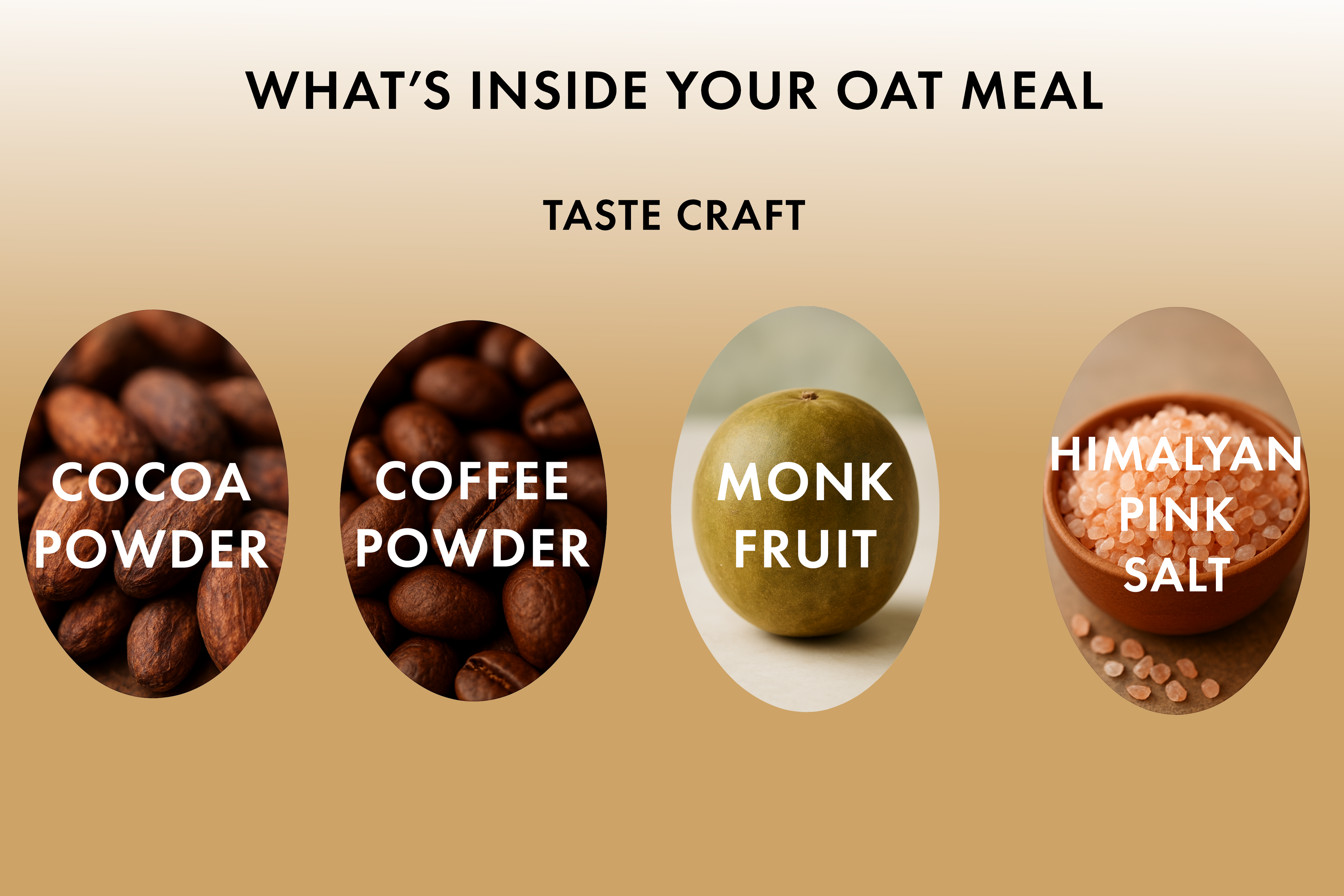 Our oats meal is crafted in-house using real ingredients, traditional Indian spices, and plant-based protein — with no artificial sweeteners, preservatives, or fillers. Every spoonful blends modern nutrition with ancient wisdom — where science meets soul.